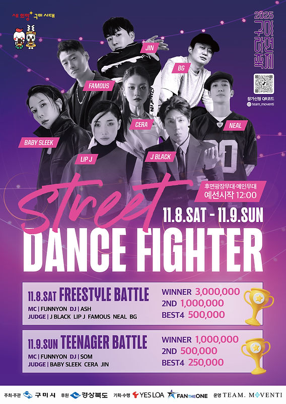 - 스트리트댄스파이터 저지: 청소년부 및 일반부로 나뉘어 스트리트댄스 경연 진행. 국내외 대표 댄서들이 심사위원으로 참여.